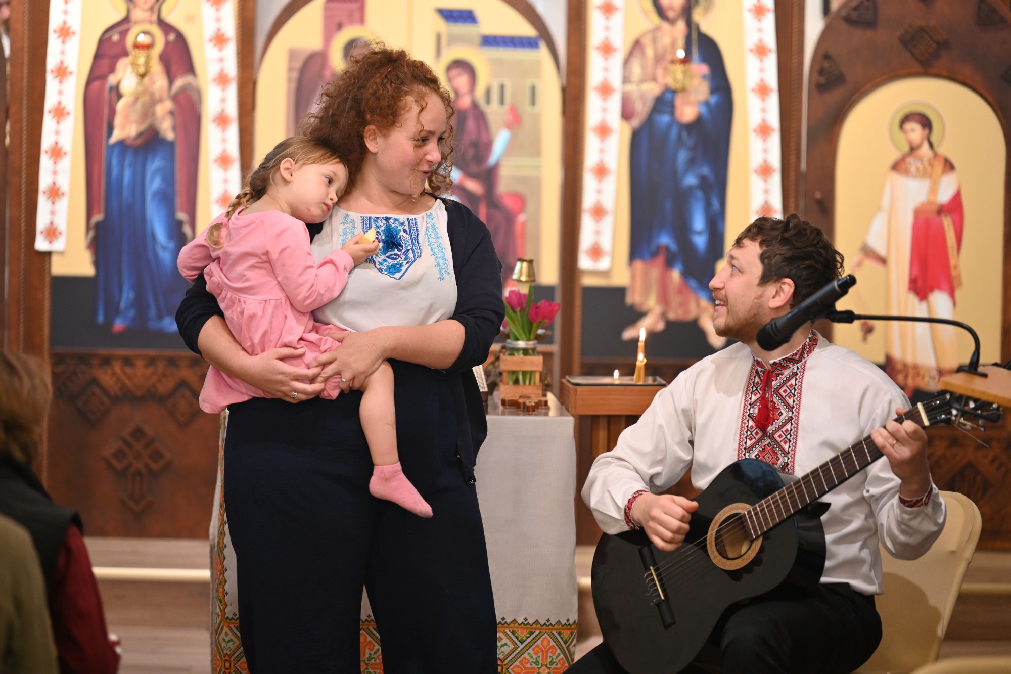 Святкування продовжилося мистецькою програмою. Щиро дякуємо колективу «Оберіг» за коляду, родині Peter Chabot — за зворушливу пісню, присвячену Гваделупській Божій Матері, а також Кларі та Костянтину Ачкасовим за чудові пісенні виступи. Особливою радістю стало те, що цього дня ми почули спів чотирма мовами — як гарний знак єдності нашої різноманітної, але однієї в Христі спільноти.